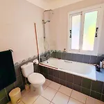 Badrumsfaciliteterna i Pink Villa inkluderar också en separat toalett och en dusch. Det finns också badlakan och handdukar för gästernas komfort.